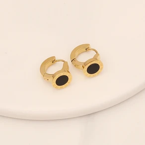 تتميز هذه الأقراط بتصميم هوب صغير (Huggies) يلتف حول شحمة الأذن. الجزء الأبرز هو القرص الدائري المدمج في الجزء السفلي، والمزين بلمسة كلاسيكية خالدة.