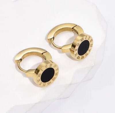 - الأناقة الكلاسيكية: تجمع بين بساطة الأقراط الحلقية وفخامة الأرقام الرومانية.
